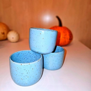 Czarka ceramiczna nakrapiana błękitna - 150 ml kubek bez ucha ręcznie toczony niebieska czarka kubek