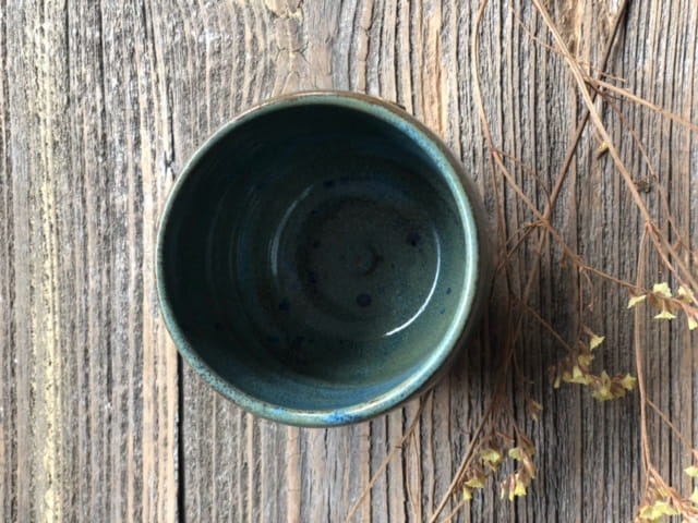 Czarka duże espresso ceramiczna zielono-niebieska z serduszkiem 180 ml dwukolorowa kubek bez ucha z serduszkiem Basala kolor świąteczny zielony