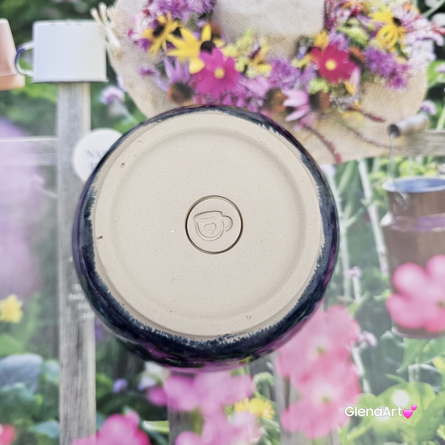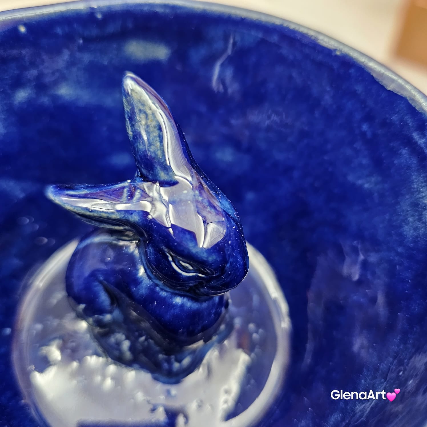 Czarka kobaltowa ceramiczna filiżanka bez ucha kobaltowa z zajączkiem wewnątrz czarki rękodzieło ceramika kobaltowy kolor króliczek w środku