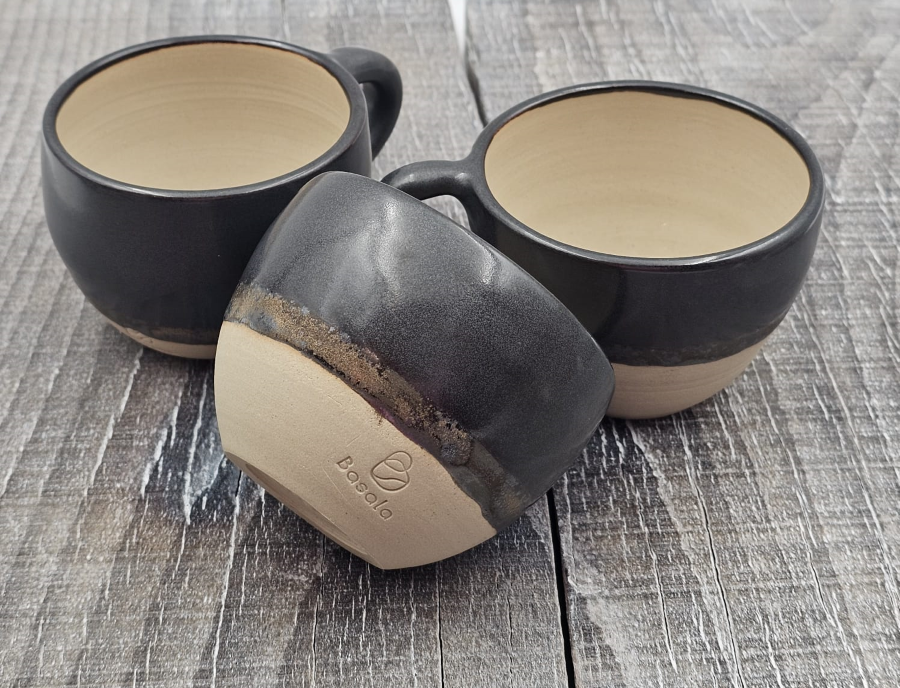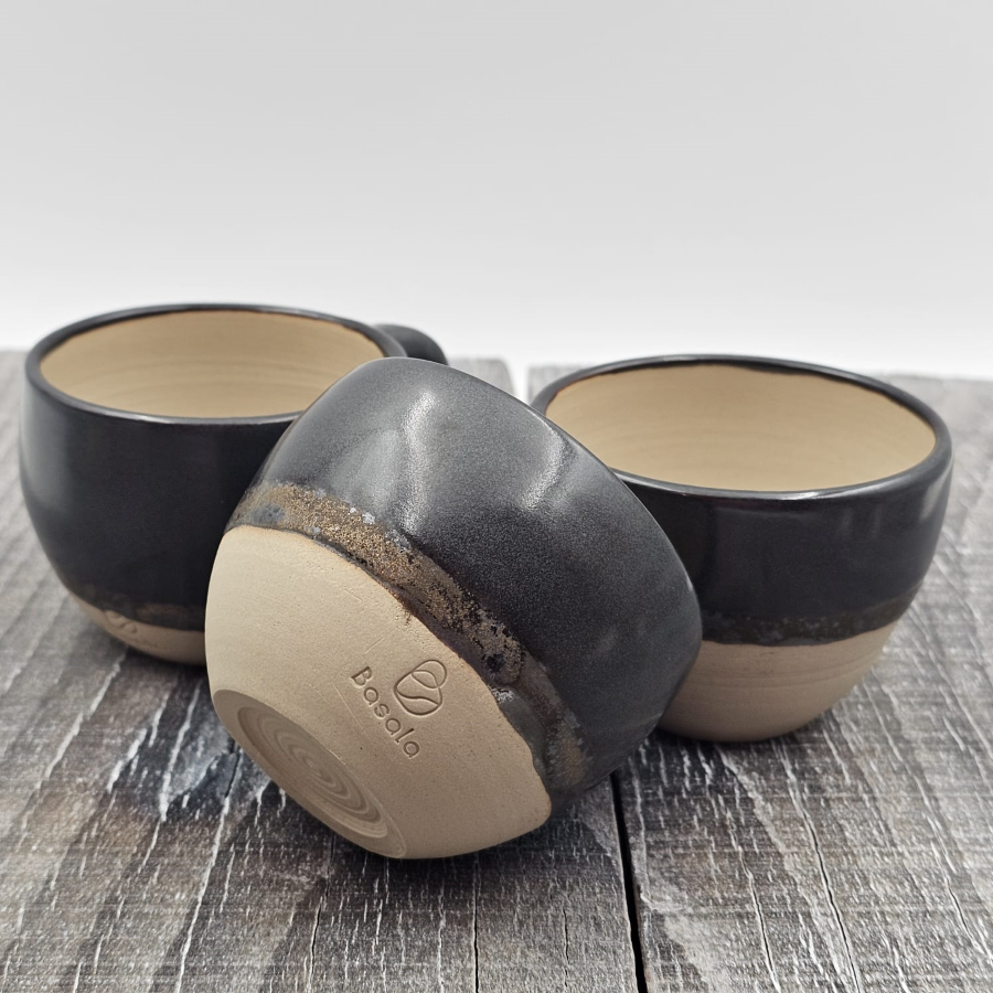 Filiżanka ceramiczna brązowa z uchem czarno-brązowe szkliwo elegancka ze złotymi refleksami 250 ml elegancka filiżanka na prezent wytoczona na kole garncarskim rękodzieło