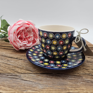 Filiżanka ceramiczna ze spodkiem Słoneczko o poj. ok. 230 ml