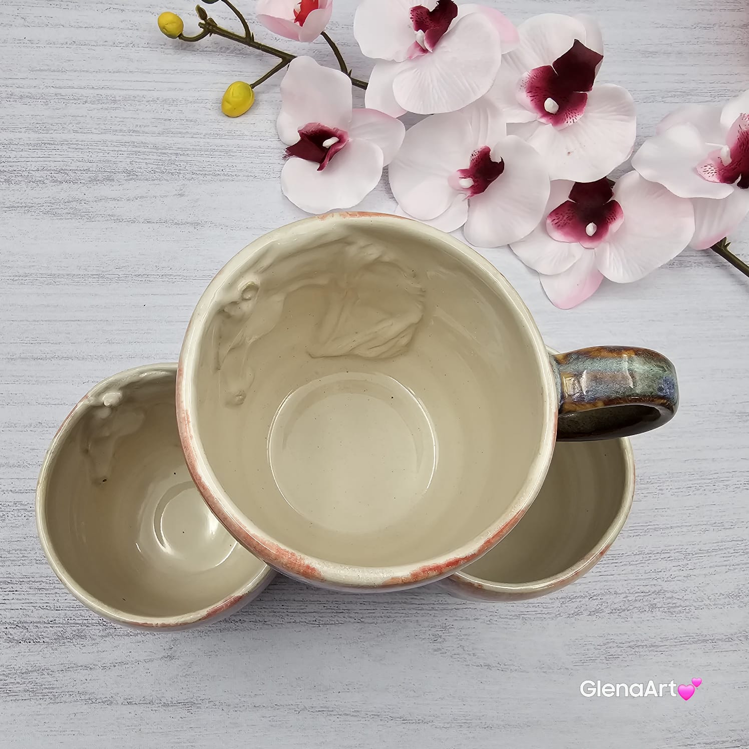Kubek wypalony na kamionkę 1240 C – nadaje się do gorących płynów.
