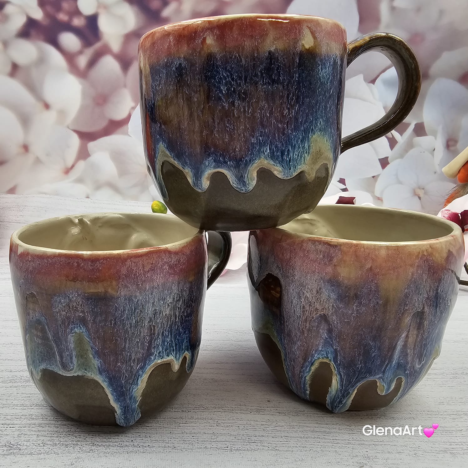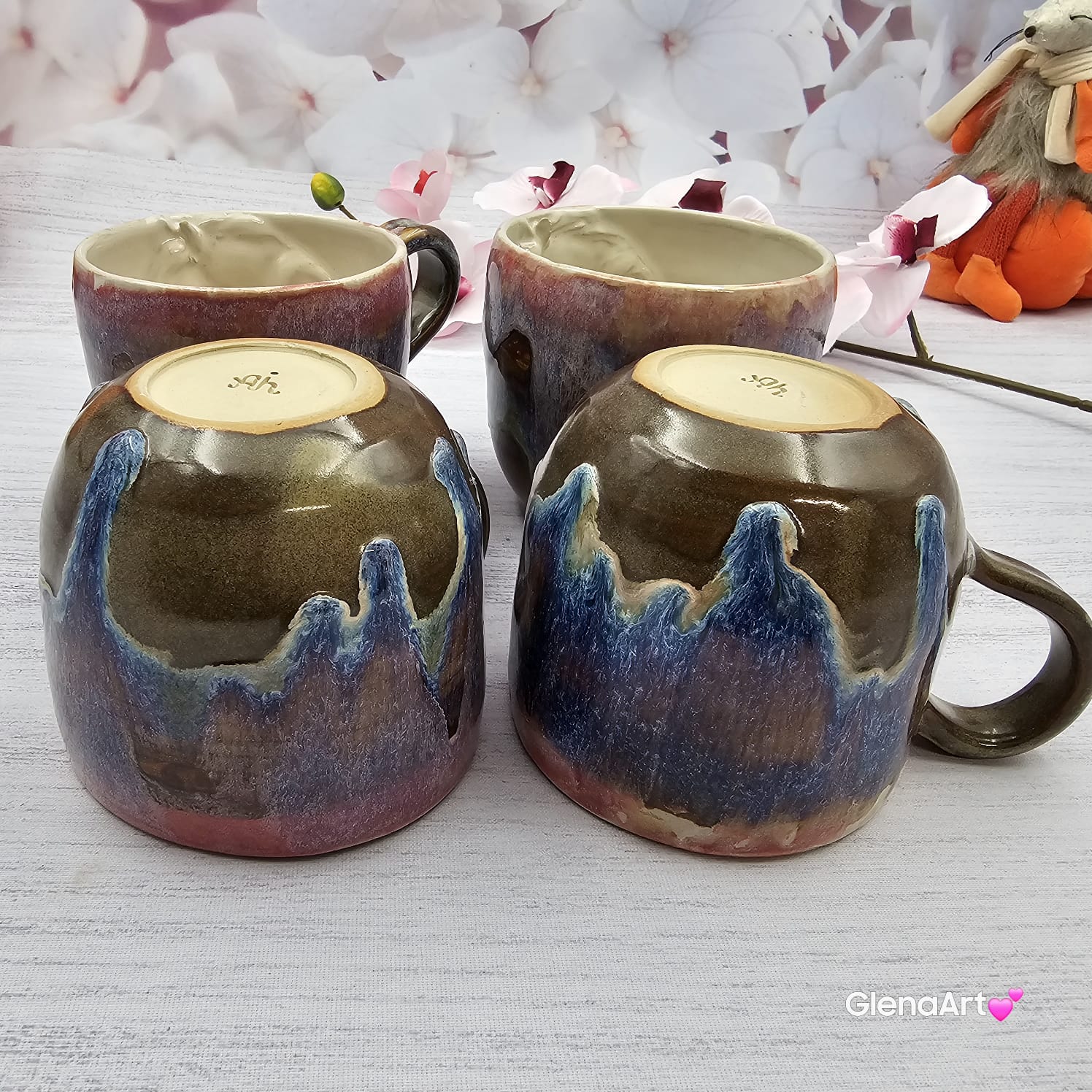 Przepięknie przenikające się szkliwa w kolorach brązu, różu, niebieskiego i fioletu.