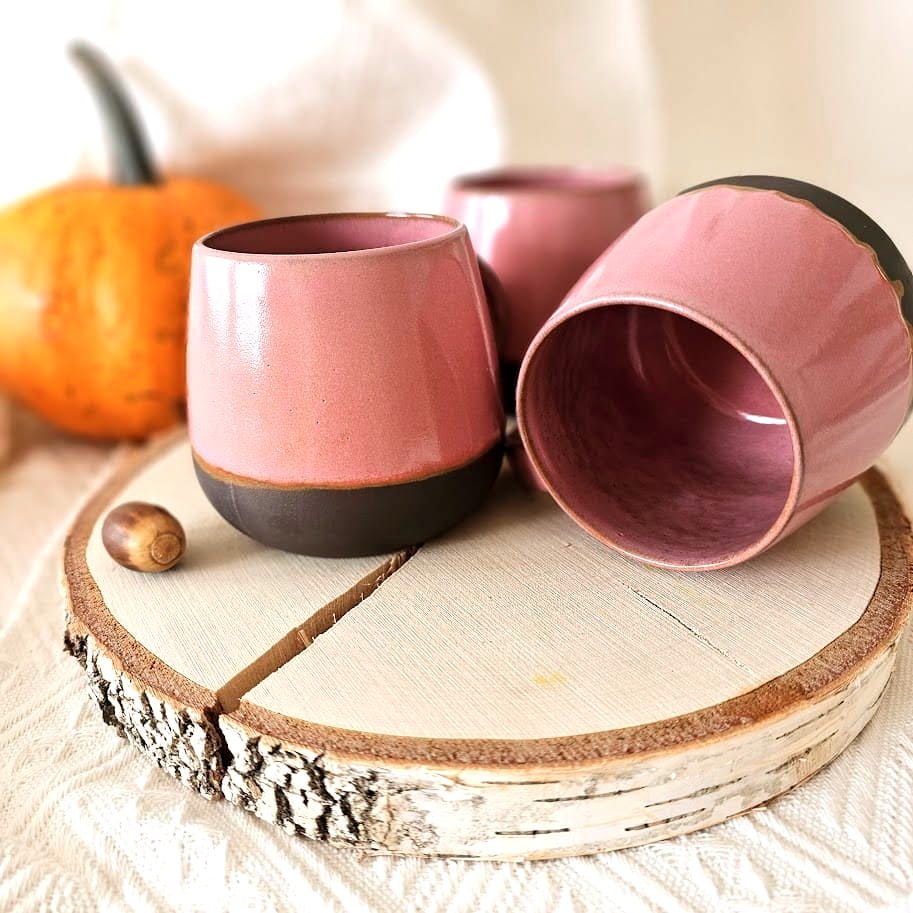 Ręcznie robiony kubek ceramiczny beczułka różowy MALINA.
