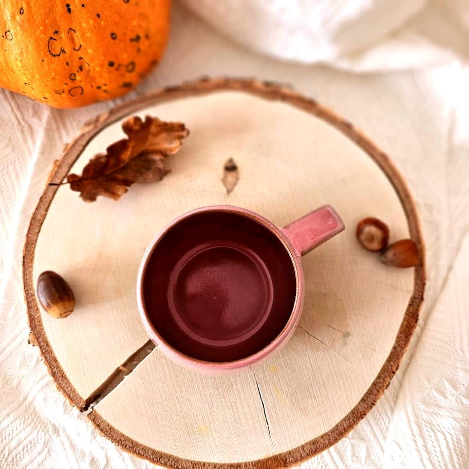 Kubek ceramiczny Beczułka z uchem ręcznie robiony 320 ml - MALINA rękodzieło kolor malinowy
