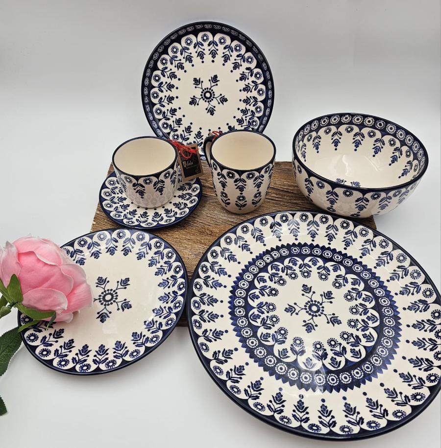 Wszystkie wyroby ceramiczne malowane są ręcznie za pomocą pędzli i stempelków. Farby używane do zdobienia są na bazie naturalnych surowców czyli w pełni bezpieczne w kontakcie z żywnością.