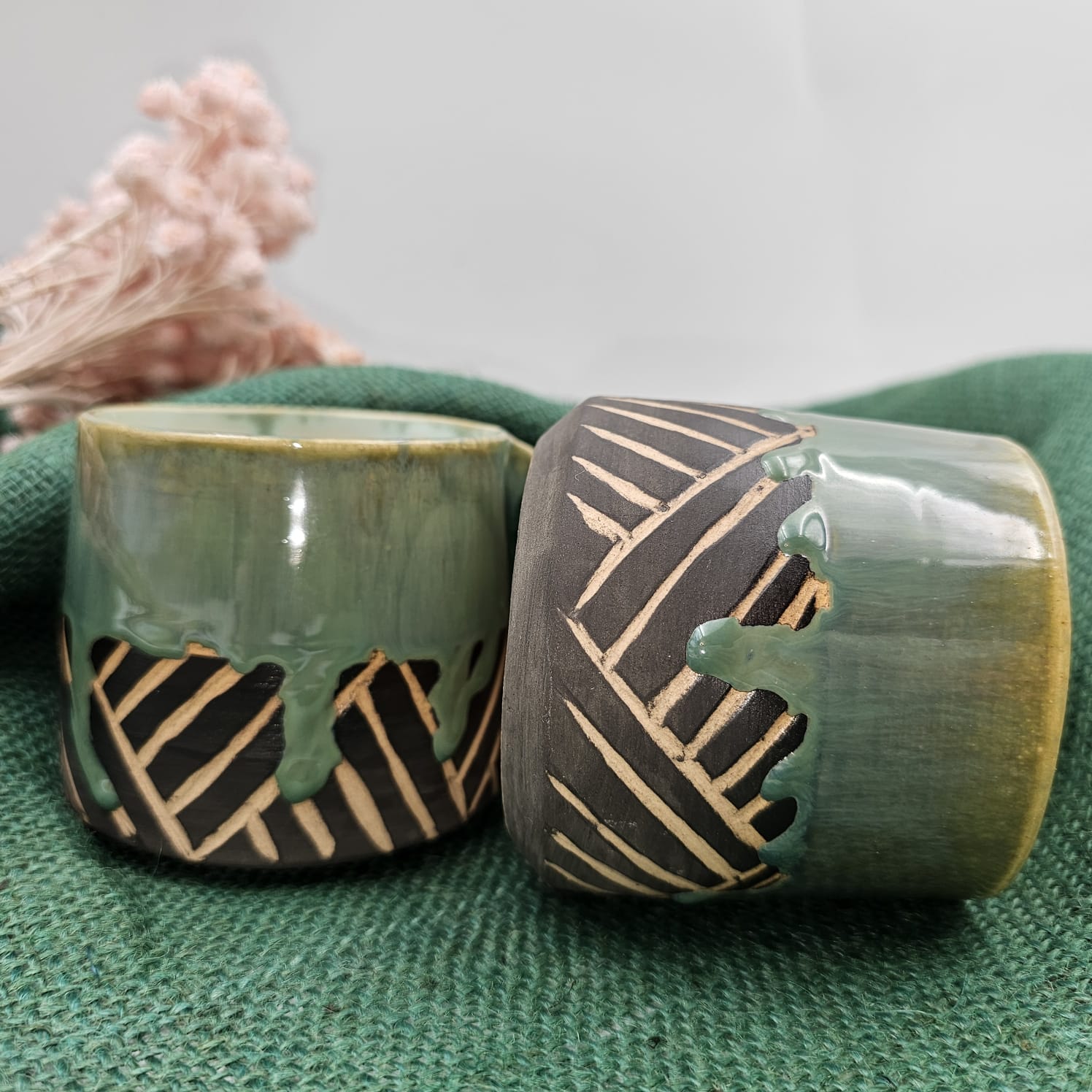Kubek ceramiczny OCIEK spływający ok. 300 ml ręcznie toczony rękodzieło ręcznie zdobiony czarno-zielony