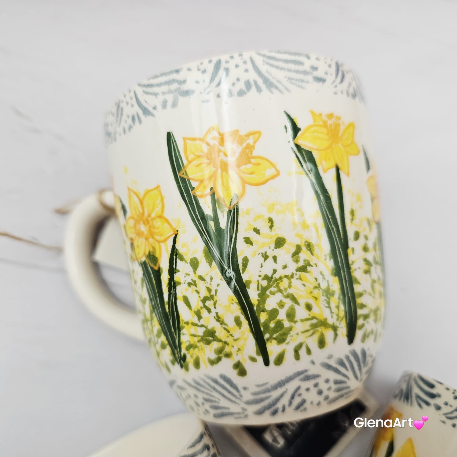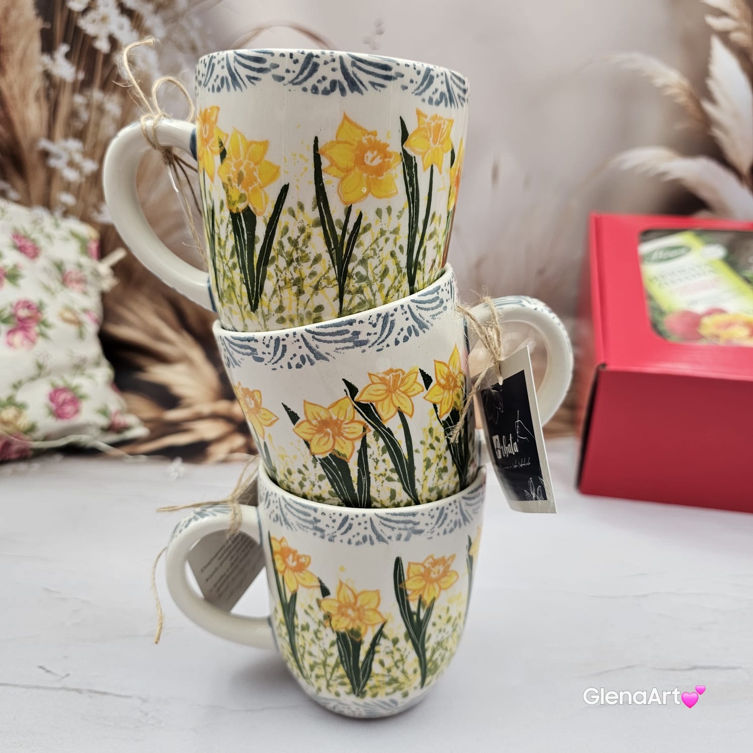 Piękny kubek wiosenny w żółte urocze narcyzy / żonkile.