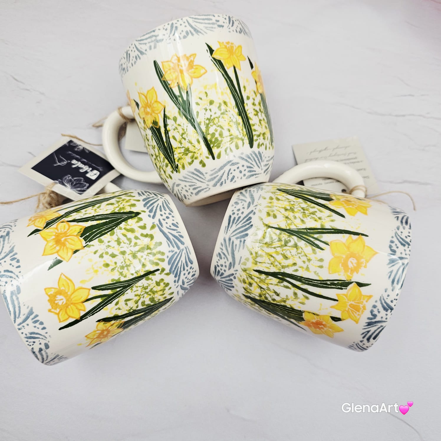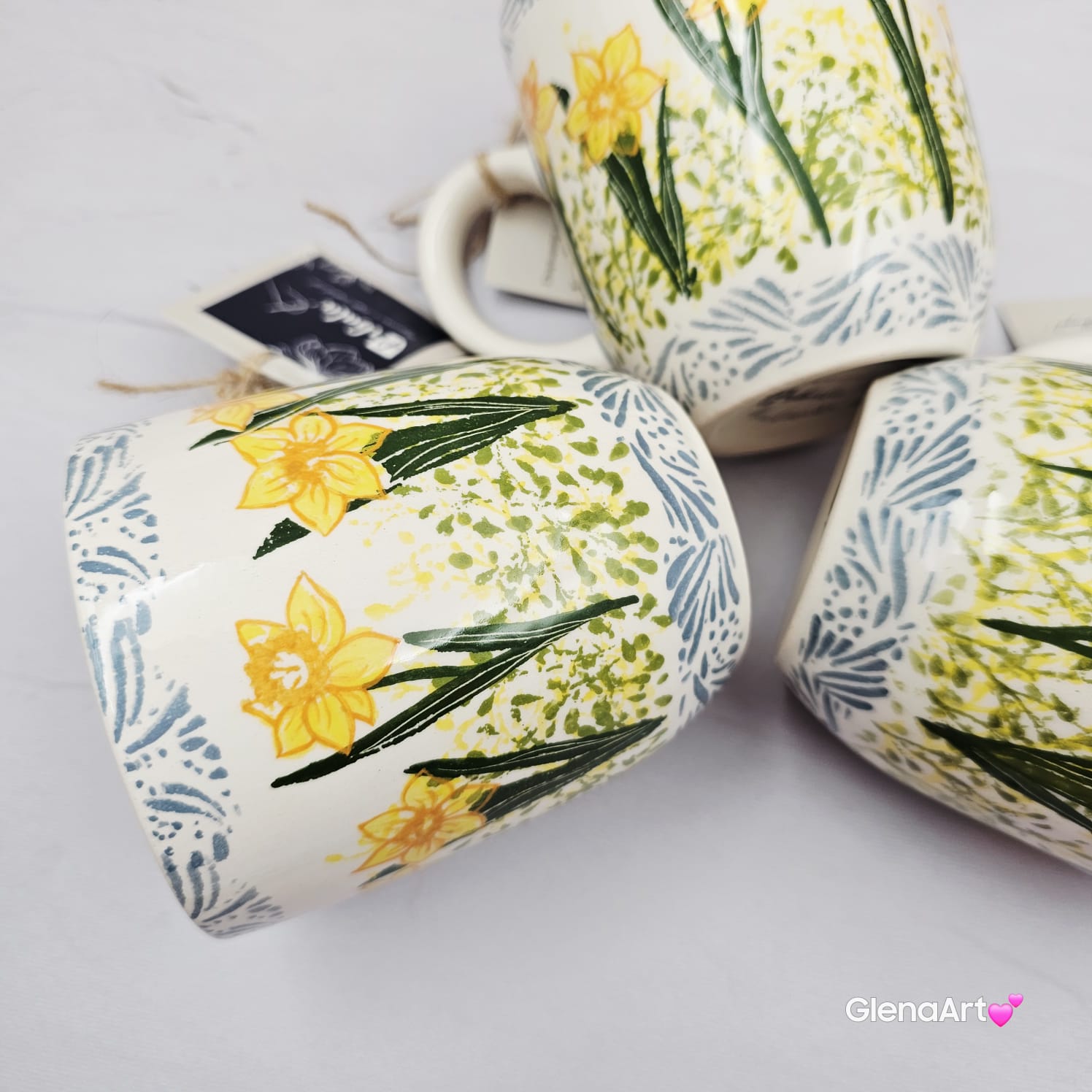Kubek ceramiczny wiosenny Żonkil / Narcyz kaszubska ceramika ręcznie zdobiony Arbata kubek narcyzy poj. 320 ml piękne narcyzy wiosenne żonkile kubek żonkil kubek bell w żonkile