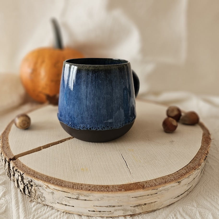 Ręcznie robiony niebieski kubek ceramiczny z kolekcji Borówka.