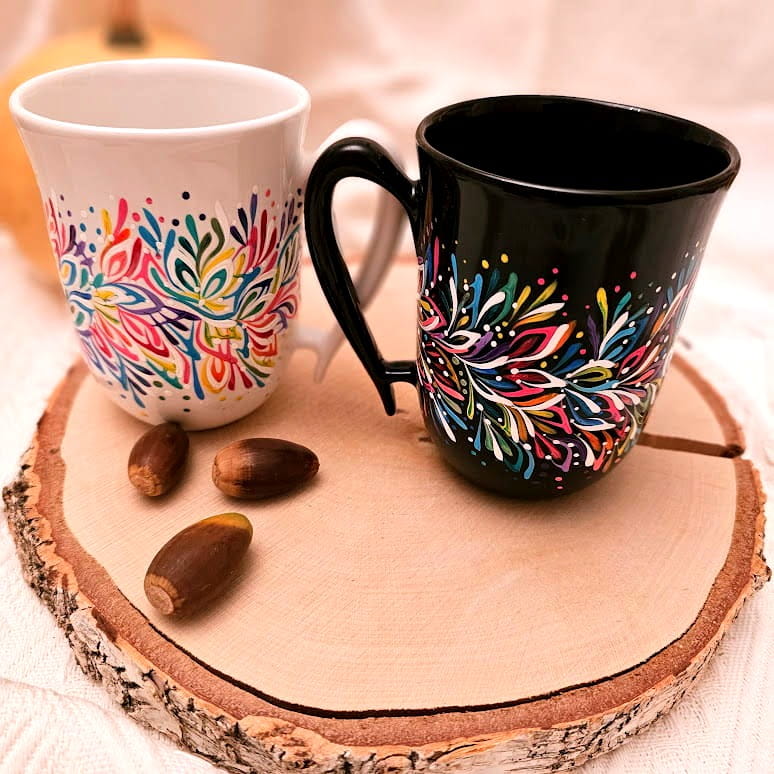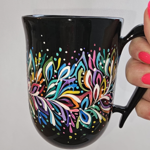 Kubek ceramiczny z uchem Czarny Multikolor ON - 300ml - przepiękny ręcznie malowany