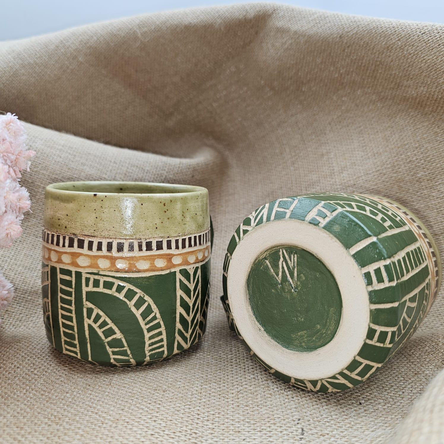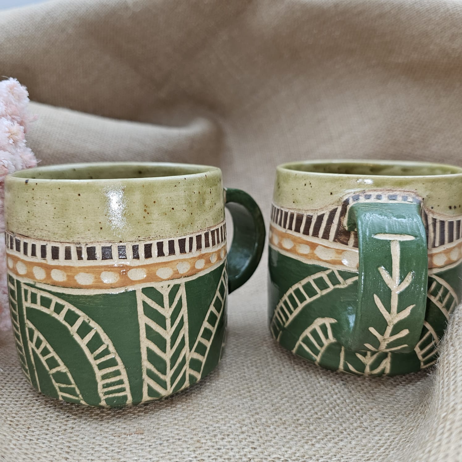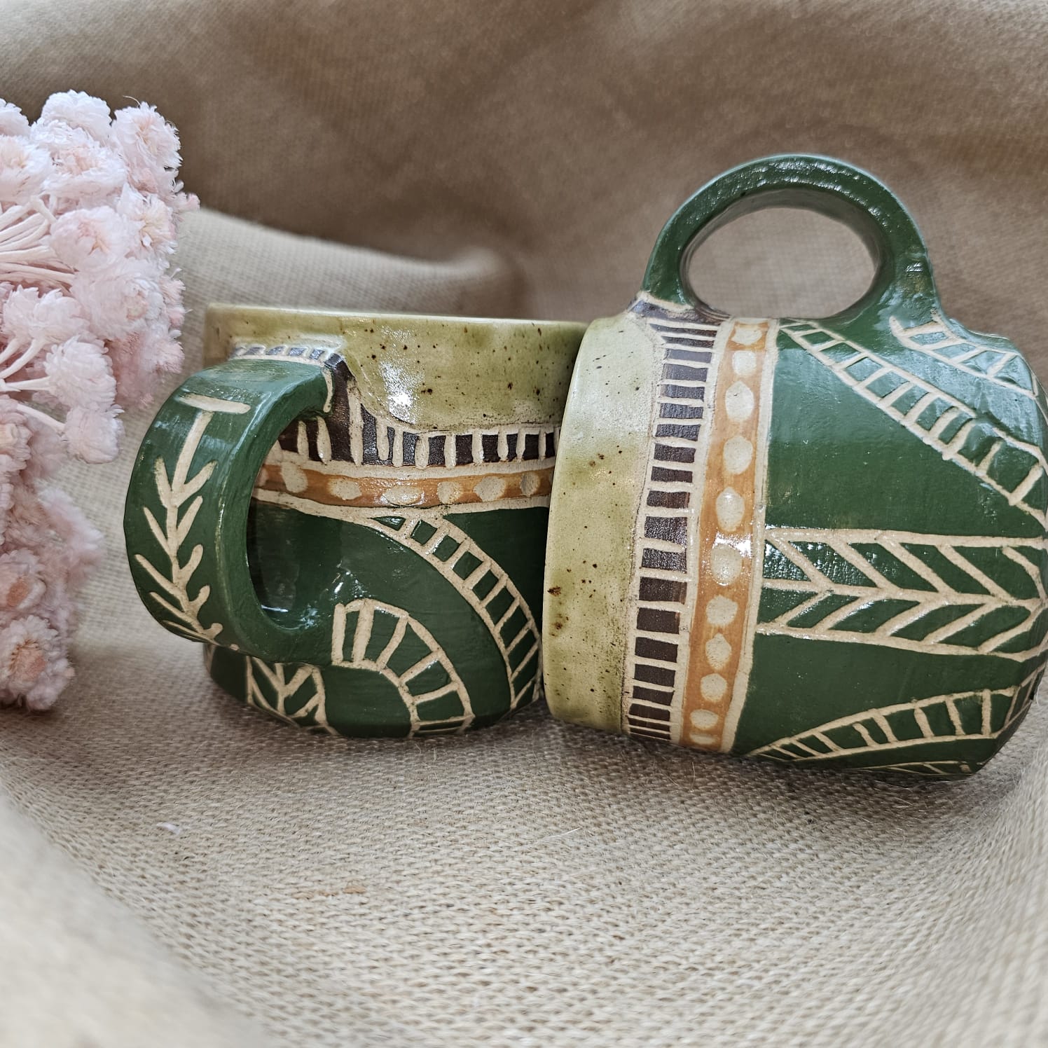 Kubek ceramiczny z uchem zielony AFRYKA poj. ok. 300 ml ręcznie toczony rękodzieło ręcznie zdobiony dla miłośnika afrykańskich klimatów