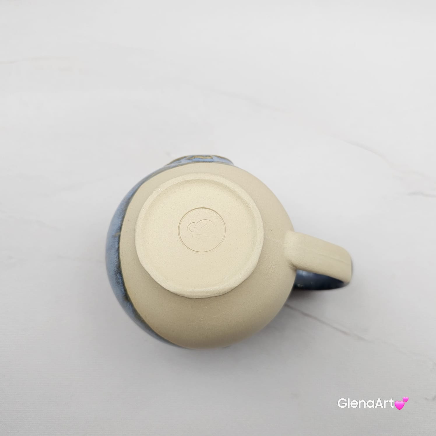 Kubek czeski beczułka z kurczakiem w kolorach przenikającej się głębi oceanu ceramiczny Glena Art beczułka kurczaczek kubek z uszkiem do kawy herbaty ulubiony kubek ceramiczny ceramika 220 ml z kurczakiem niebieskie odcienie