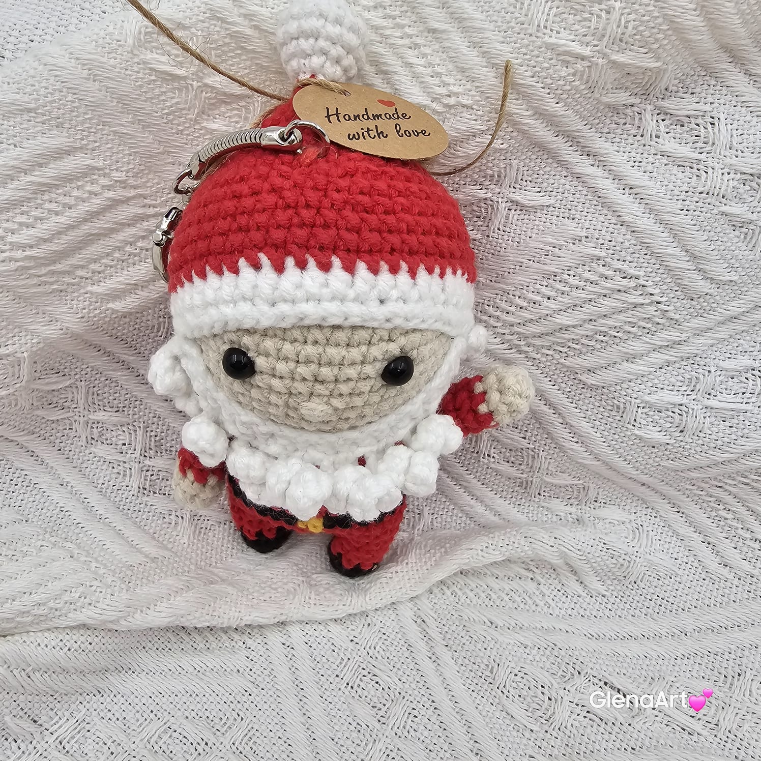 MIKOŁAJEK ŚWIĄTECZNY na szydełku brelok / zawieszka jest z hipoalergicznej włóczki, która się nie rozciąga, ani nie mechaci.