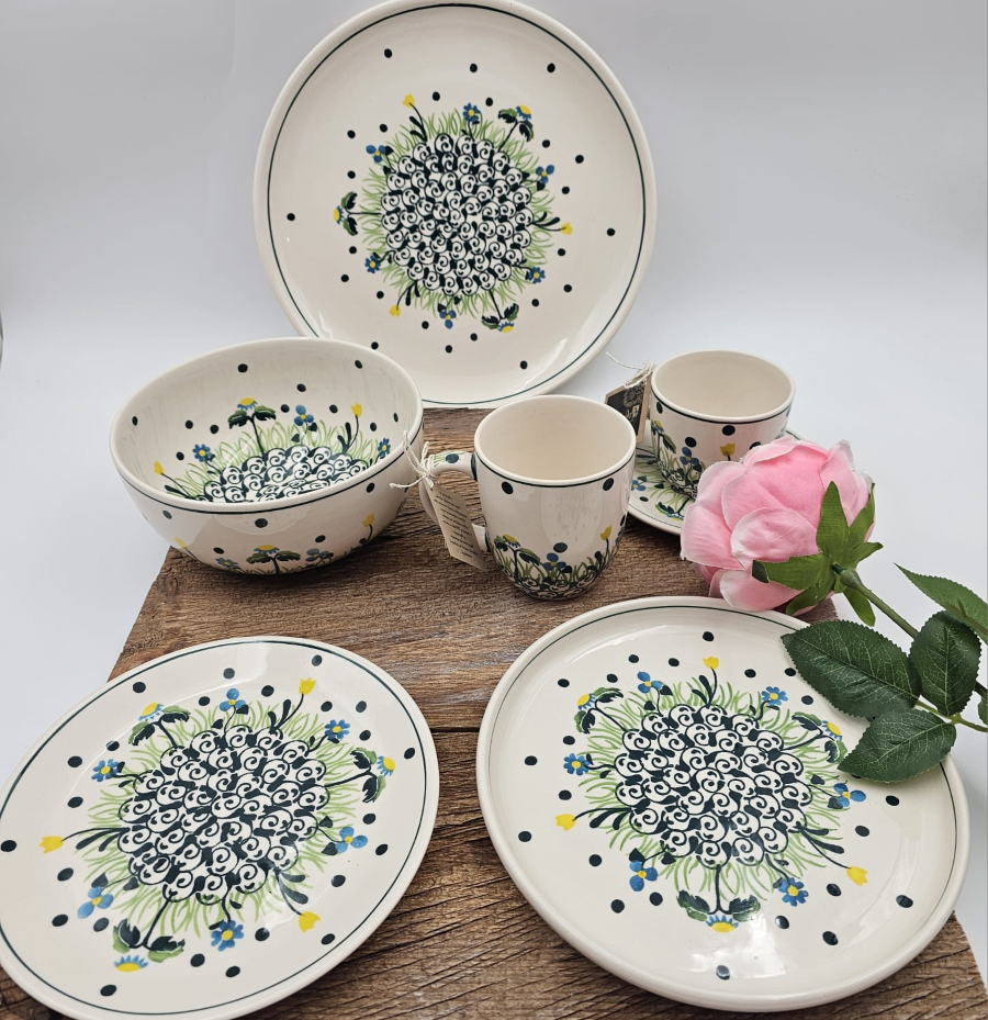 Wszystkie wyroby ceramiczne malowane są ręcznie za pomocą pędzli i stempelków. Farby używane do zdobienia są na bazie naturalnych surowców czyli w pełni bezpieczne w kontakcie z żywnością.