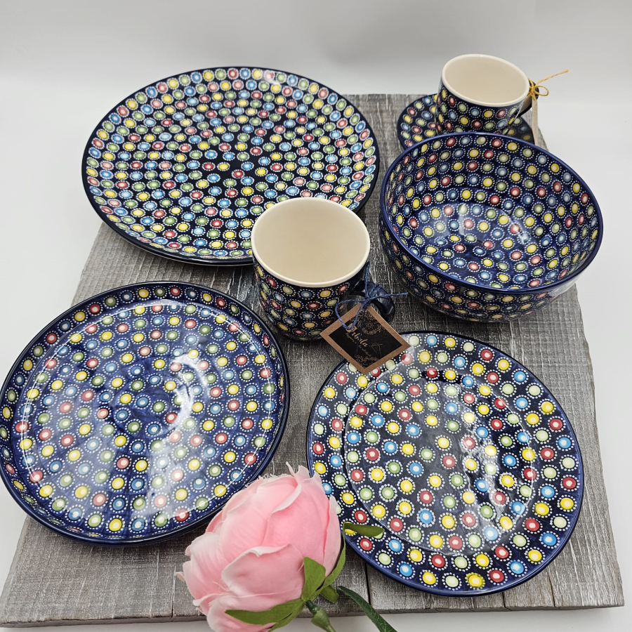 Wszystkie wyroby ceramiczne malowane są ręcznie za pomocą pędzli i stempelków. Farby używane do zdobienia są na bazie naturalnych surowców czyli w pełni bezpieczne w kontakcie z żywnością.