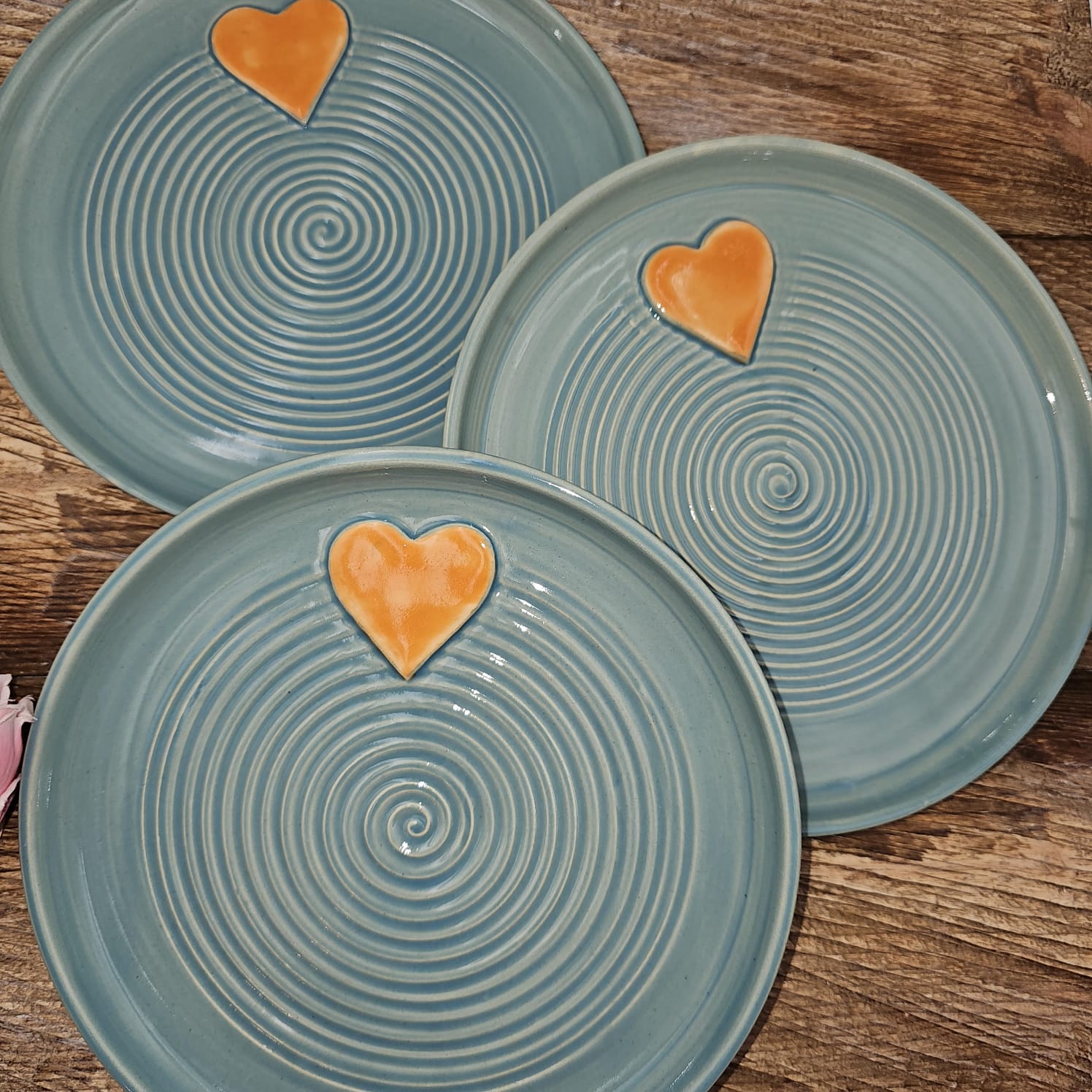 Talerz ceramiczny, toczony na kole o śr. ok. 20 cm z uroczym serduszkiem.