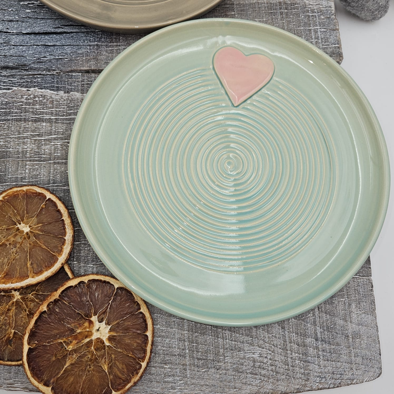 Talerz ceramiczny SELEDYNOWY z serduszkiem o śr. ok. 20 cm