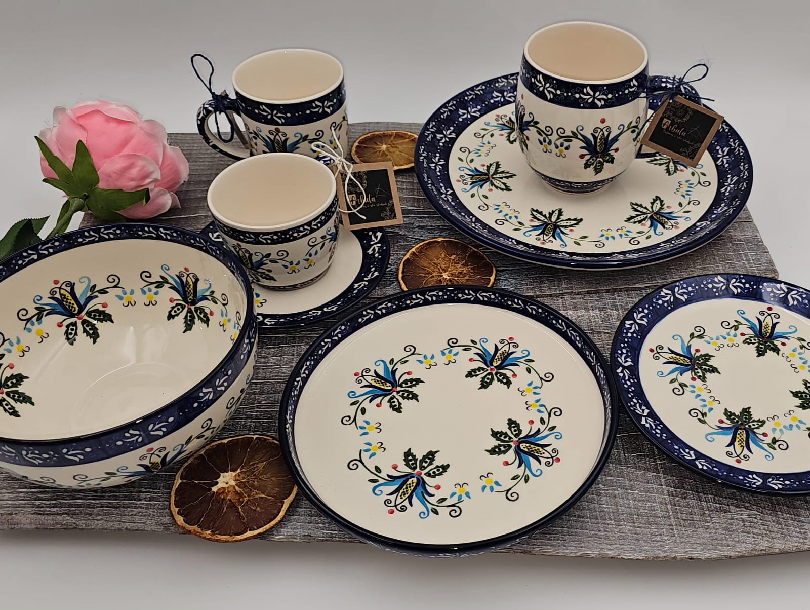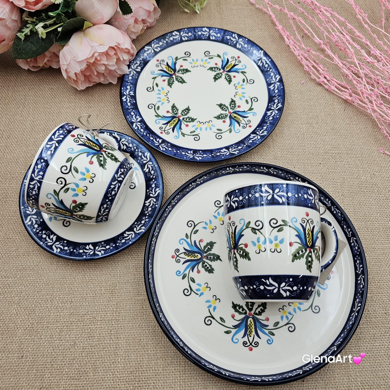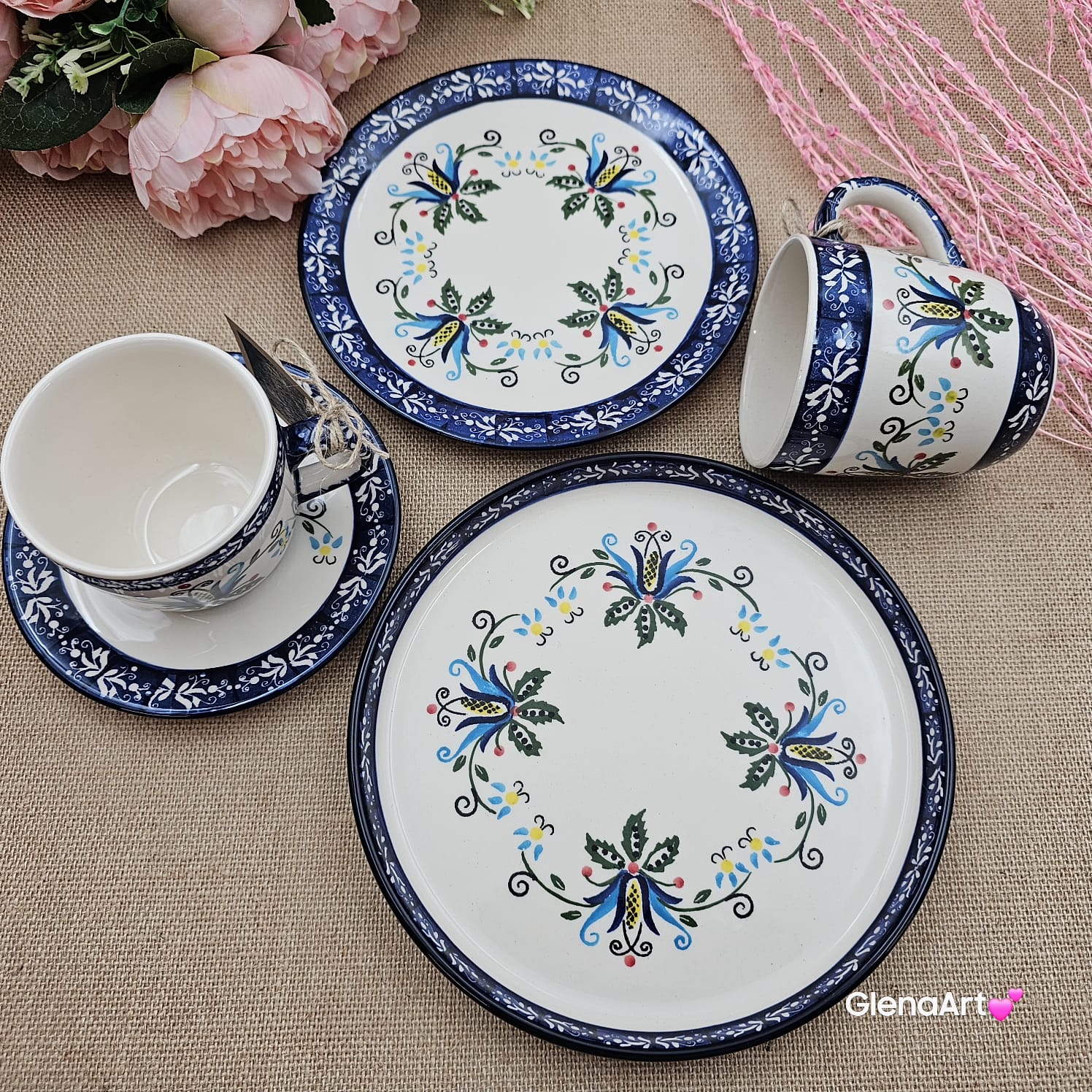 Wszystkie wyroby ceramiczne malowane są ręcznie za pomocą pędzli i stempelków.