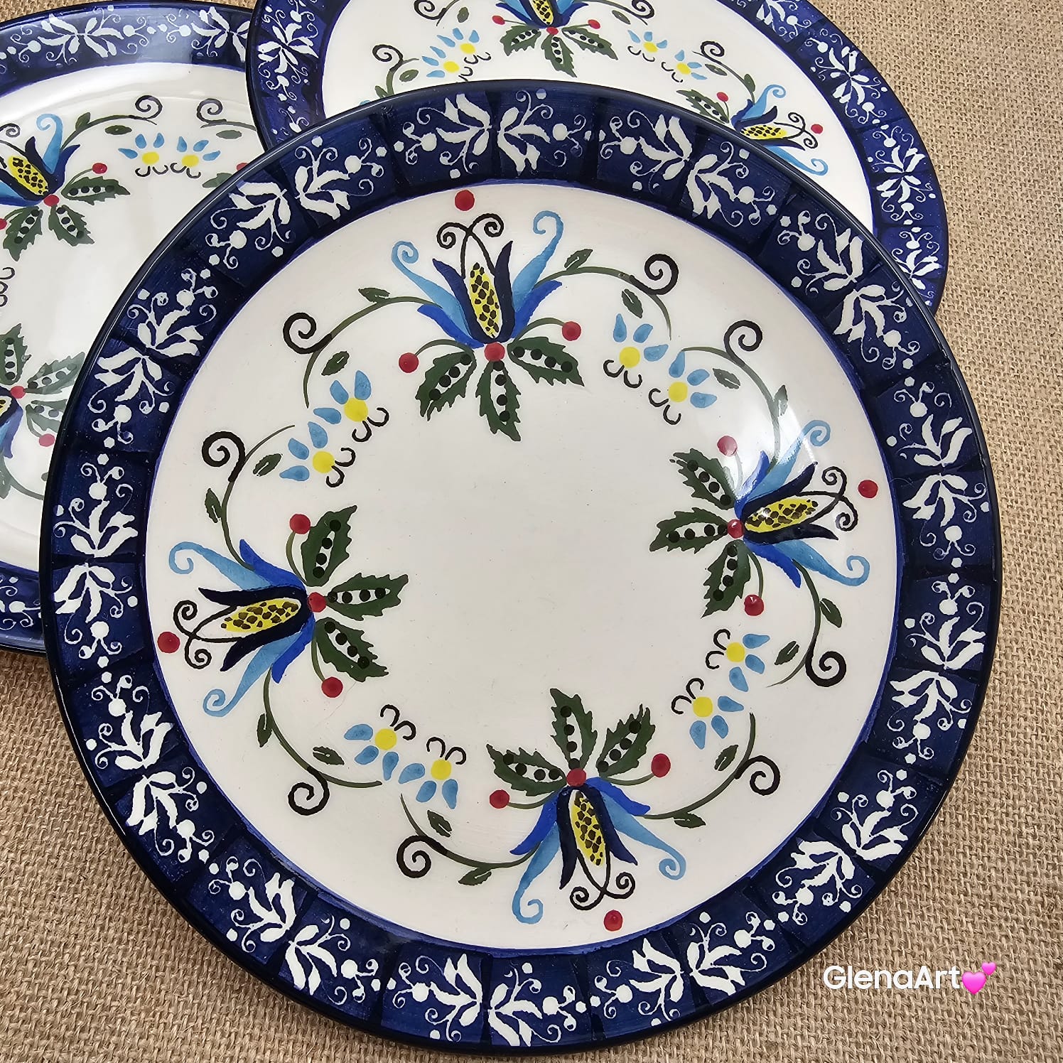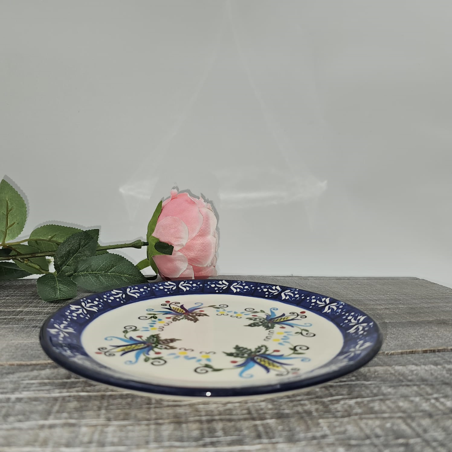 Talerz ceramiczny folkowy kaszubski śniadaniowy KASZUBEK kaszubska ceramika ręcznie zdobiona Arbata