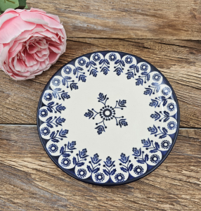Talerz ceramiczny śniadaniowy Kobalt piękna kaszubska ceramika oryginalny wzór ręcznie zdobiona Arbata
