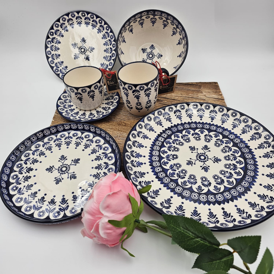 Wszystkie wyroby ceramiczne malowane są ręcznie za pomocą pędzli i stempelków. Farby używane do zdobienia są na bazie naturalnych surowców czyli w pełni bezpieczne w kontakcie z żywnością.