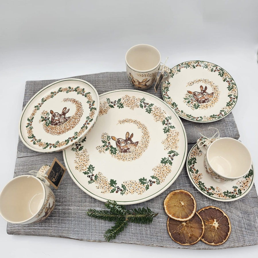 Talerz ceramiczny śniadaniowy UNIKAT Sarenki kaszubska ceramika ręcznie malowana Arbata sarenka