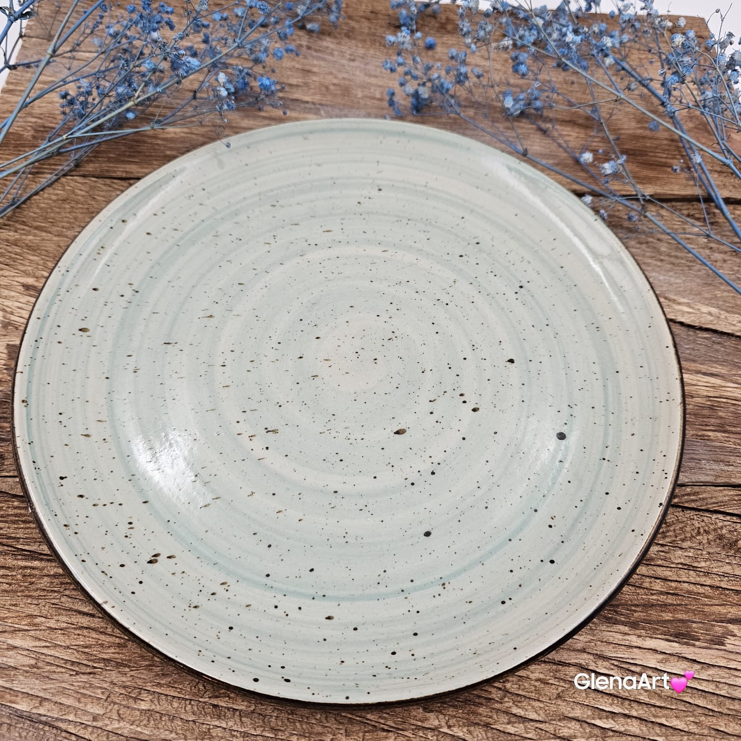 Talerz obiadowy o średnicy 27 cm SELEDYNOWY Still Rustic. Piękny płytki ceramiczny talerz.