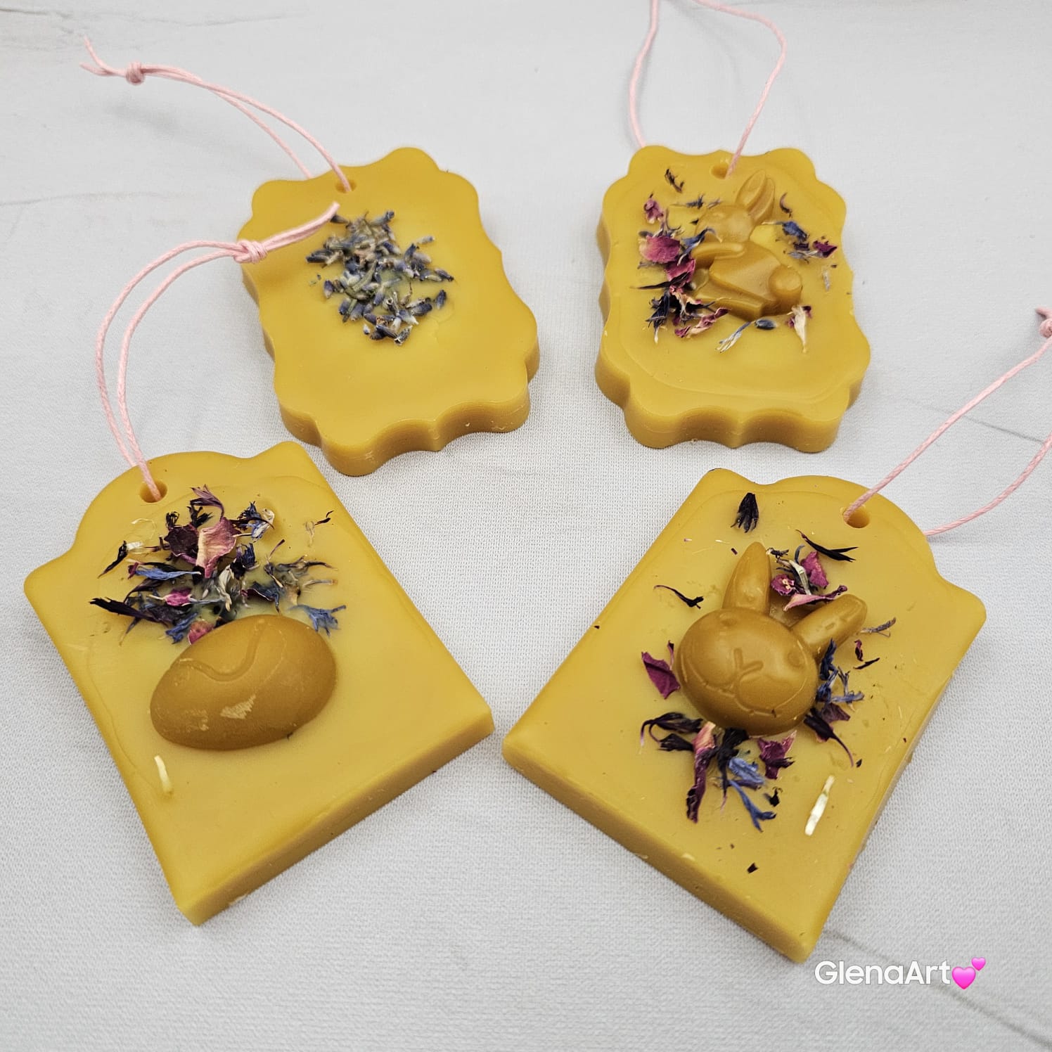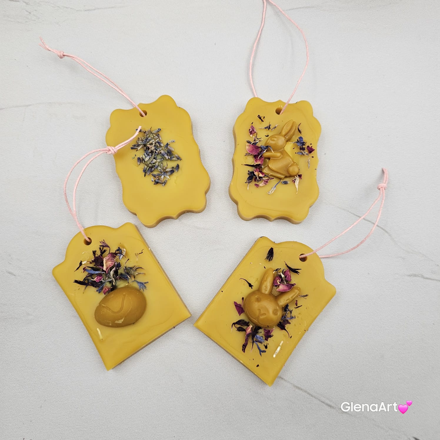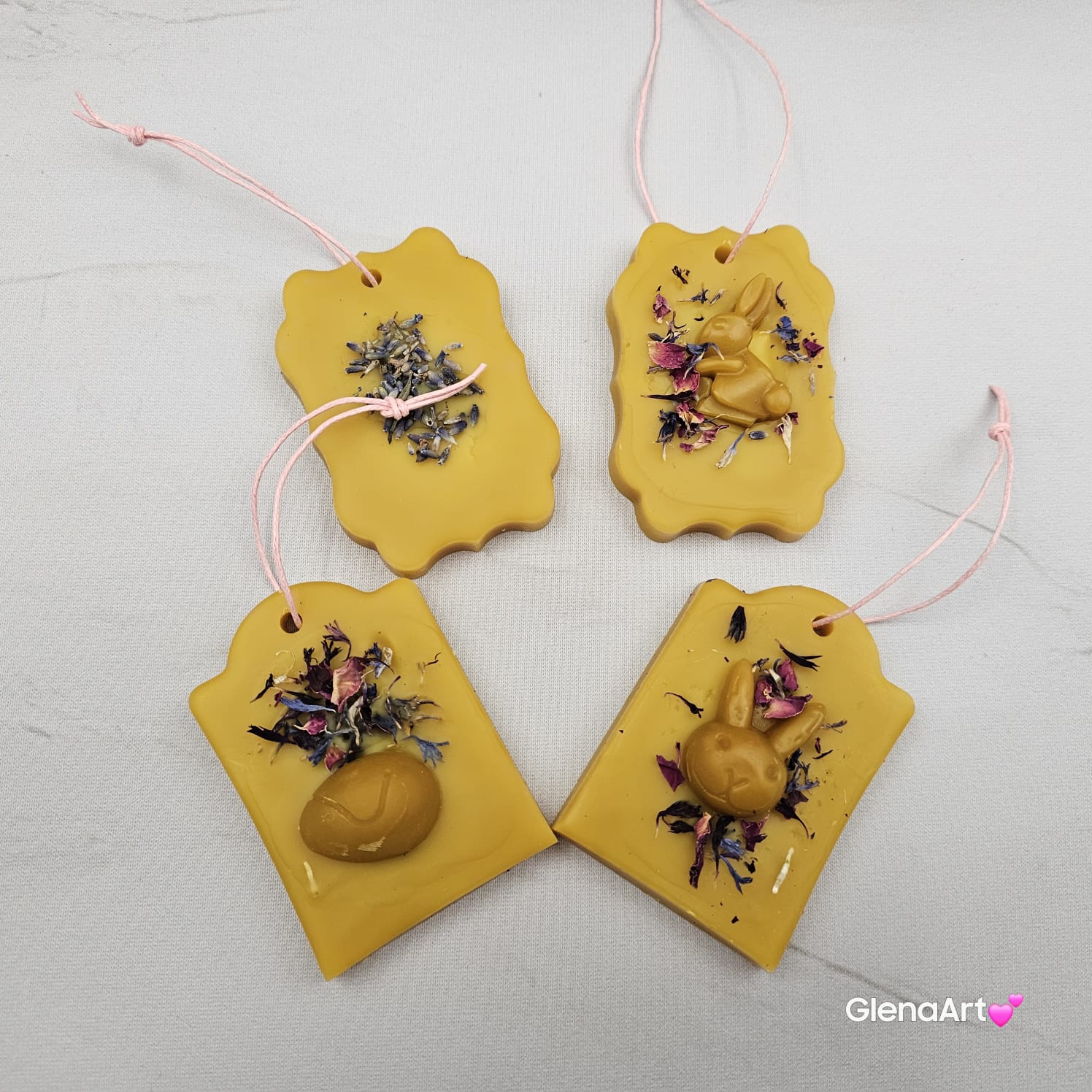 Zawieszka ozdoba wielkanocna tabliczka florencka ozdoba wielkanocna z wosku pszczelego 100 % naturalna na sznurku naturalnym zawieszka na gałązki wierzby lub brzózki wielkanocne zawieszka motyw wielkanocny wosk pszczeli zawieszka naturalna wiosenna